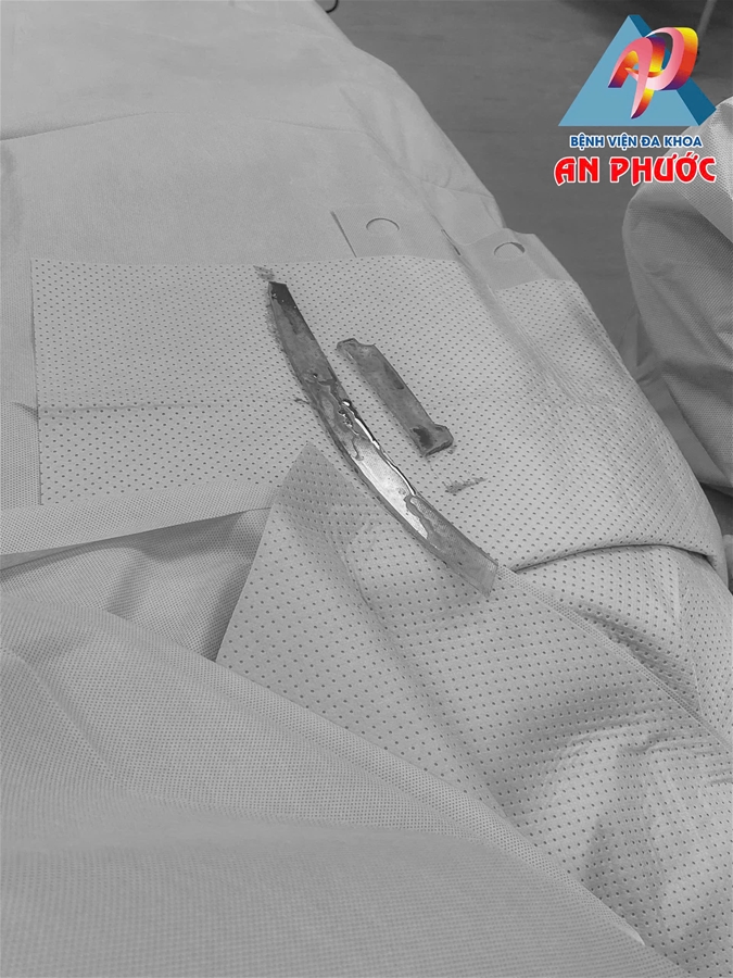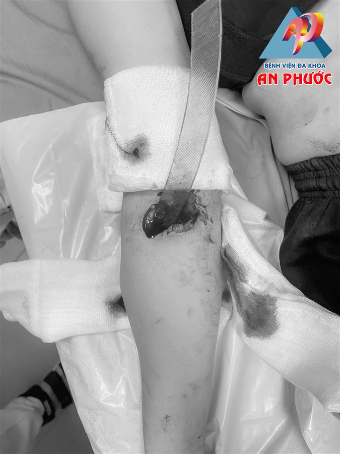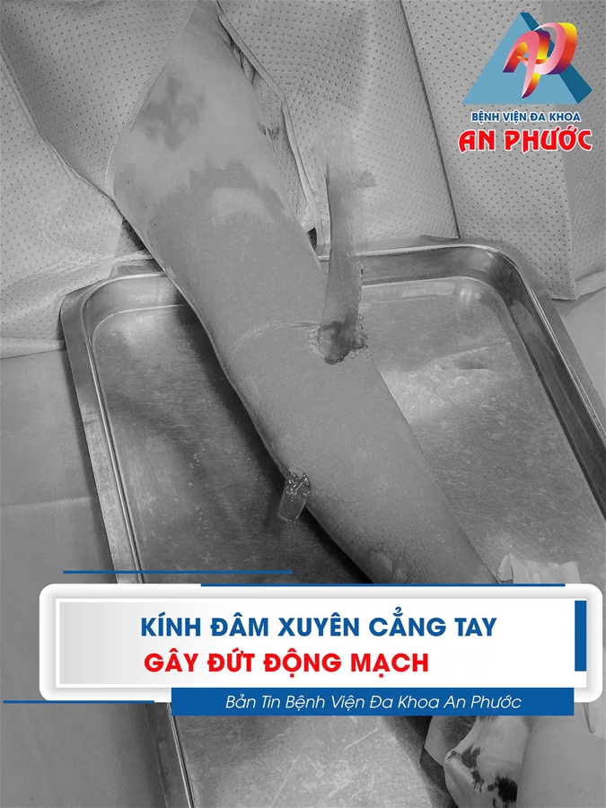 👉 Cách nhập viện 15 phút, bệnh nhân bị mảnh cửa kính rơi đâm xuyên qua cẳng tay trong lúc đóng cửa. Mảnh kính sắc nhọn găm sâu, xuyên từ mặt trước vào trong cẳng tay, xuyên thủng và lộ đầu ra ở mặt ngoài cẳng tay, khiến máu chảy xối xả.